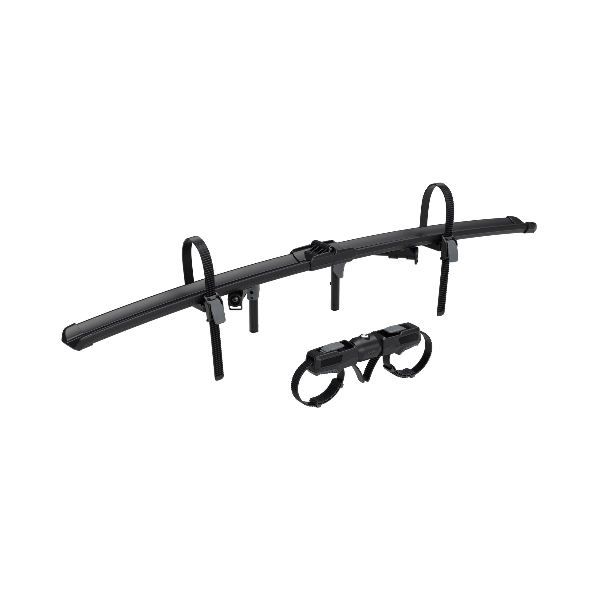 The bike-to-bike arm has lockable straps and securely attaches the additional bike to existing ones (Lock is included and compatible with Thule One-Key system)